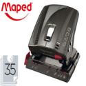 Fonction agrafage et épinglage. Profondeur d'agrafage : 300 mm. Boîte de 1000 24/6 (Réf. 41461) ou 26/6 (Réf. 47551). Boîte de 5000 24/6 (Réf. 41462) ou 26/6 (Réf. 47552). Capacité d'agrafage : 25 feuilles. Chargement par l'avant. Coloris noir. Dimensions : 60 x 55 x 430 mm.