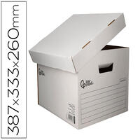 En carton ondulé super rigide. Taille parfaite pour les étagères d'archivage, la boîte peut être positionnée verticalement ou horizontalement. Indexable sur 3 faces. Solide et très facile à monter : une simple pression sur les côtés suffit. Montage automatique. Dos de 80 mm. Livrée à plat. Pour format A4. Coloris blanc. Dimensions : 250 x 350 mm. Produit certifié FSC.