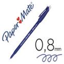 Roller effaçable à encre thermosensible pour écrire, effacer et réécrire à l'infini. Rechargeable. Grip de préhension et gomme intégrée.