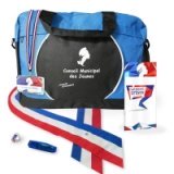 Sac à dos bleu en décotex, finition œillet métallique avec drisse blanche rouge.