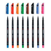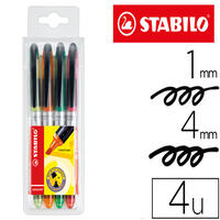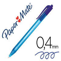 Rétractable et rechargeable. Nouvelle encre extra douce. Corps et grip caoutchouc de la couleur de l'encre. Agrafe métallique. Pointe moyenne 1 mm. Tracé de 0,5 mm.