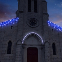 Voûte transversale, à lumière fixe, réalisée avec de la guirlande LED blanche et du cordon lumineux LED blanc.