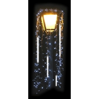 Décor équipé d'un câble d'alimentation HO5-RNF avec fiche standard classe II 230 Volts IP44 et livré avec 2 chaînettes et mousquetons.